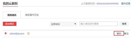 3.添加解析成功后,解析記錄已自動生成,您可以點擊左側導航的【我的云解析】,進入萬網(wǎng)云解析進行查看。