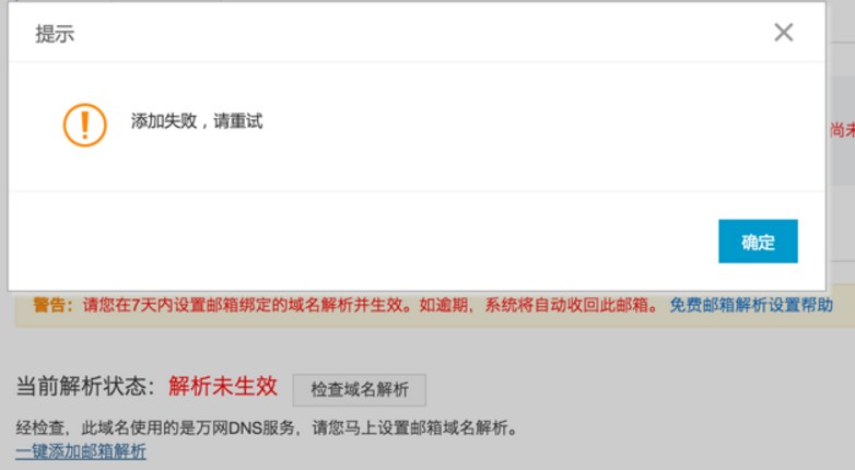 如您使用萬網(wǎng)域名,萬網(wǎng)云郵箱支持自動設置解析記錄。