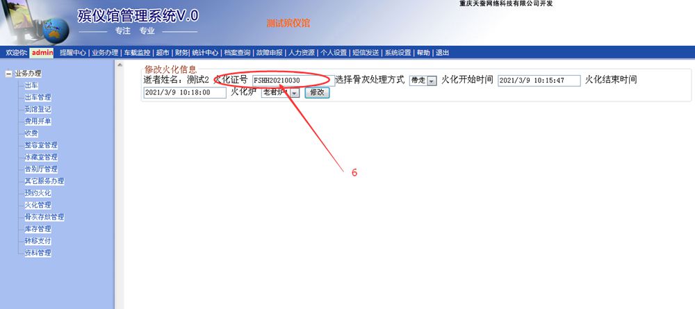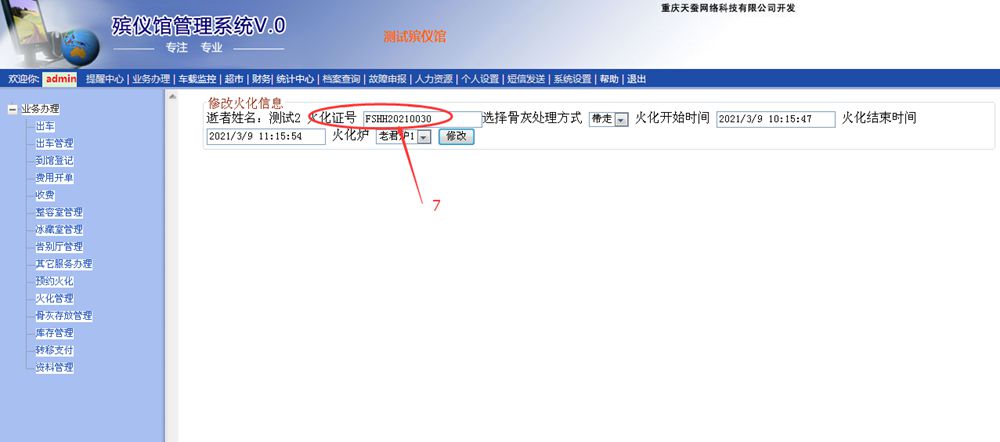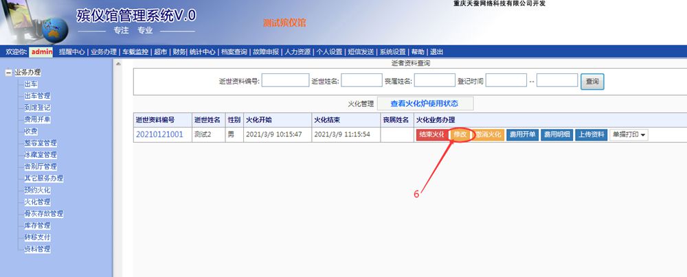 二、已經火化結束,如何修改火化編號呢?詳細如下: