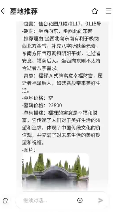 經(jīng)過天蠶公司的多日的研發(fā)的 公墓管理系統(tǒng),根據(jù)易經(jīng)風(fēng)水學(xué)說,重慶軟件開發(fā)公司 通過對逝者的生名生辰八字分析,結(jié)合陵園系統(tǒng)的待墓位情況,判斷出適合逝者適合的墓位,并能匹配出陵園園區(qū)待售墓位給家屬,家屬可以根據(jù)匹配的結(jié)果,可以了解到該墓位的朝向、墓位價格、碑型、碑圖、寓意等等。詳細(xì)咨詢天蠶軟件開發(fā)公司的客服。