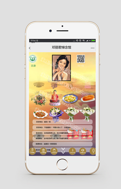 解決異地與現(xiàn)場(chǎng)憑吊親人交互解決方案,主要依托于天蠶公司的在線憑吊系統(tǒng),它成功的解決了異地與現(xiàn)場(chǎng)親人在同時(shí)表達(dá)自已哀思訴求。在線憑吊系統(tǒng)的功能有創(chuàng)建虛擬悼念廳、捆綁實(shí)體悼念廳、創(chuàng)建虛擬商品、創(chuàng)建實(shí)體商品與服務(wù)(如:代憑吊、代送帛金、獻(xiàn)花圈等)、在線支付、服務(wù)辦結(jié)、微信公眾號(hào)設(shè)置等。